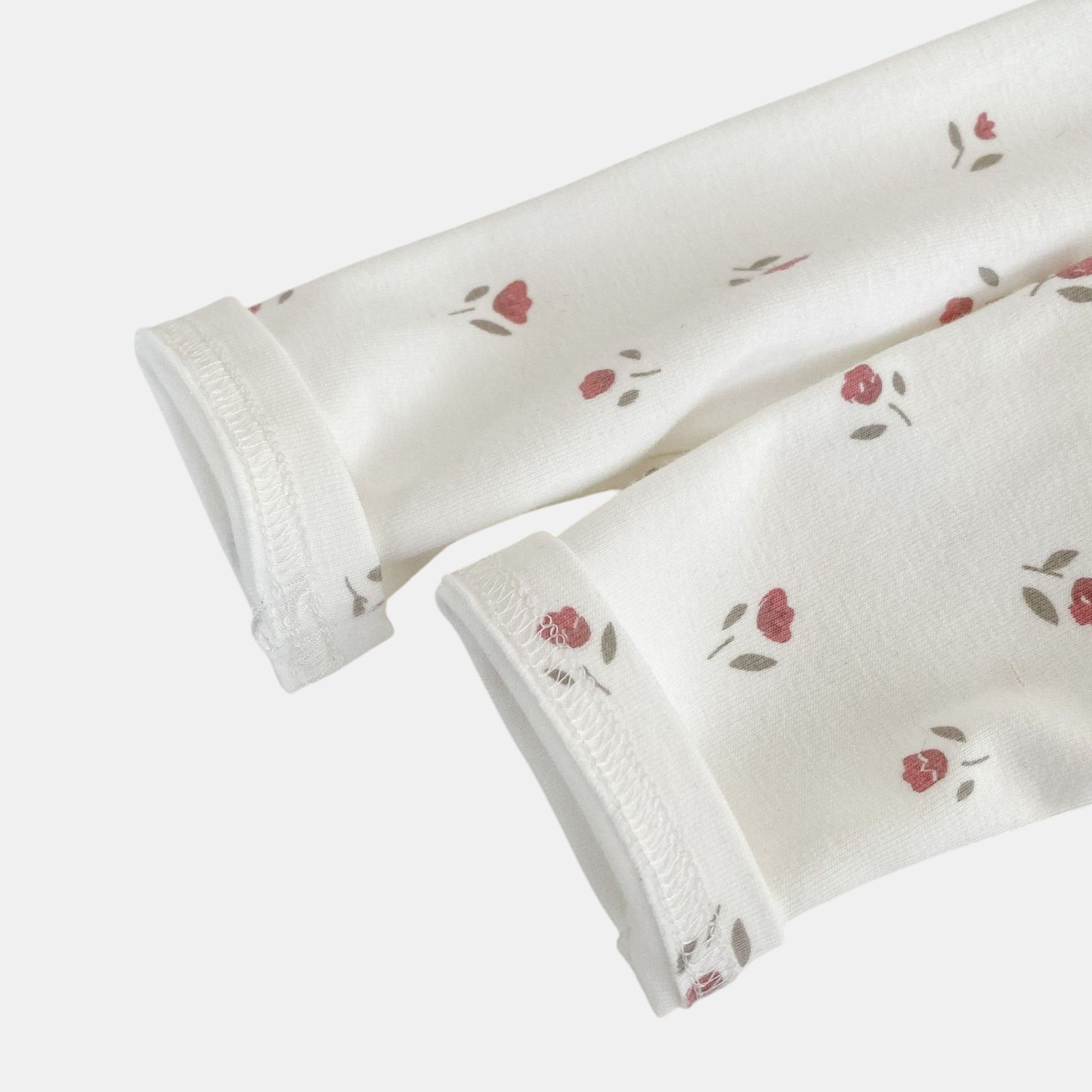 Delicate blossoms scatter across this soft cotton bodysuit, with a sweet Peter Pan collar adding timeless appeal. The snap-fastening closures make dressing easy, while the subtle floral detail pairs beautifully with denim pinafores or knitted leggings. A little piece of everyday magic.
