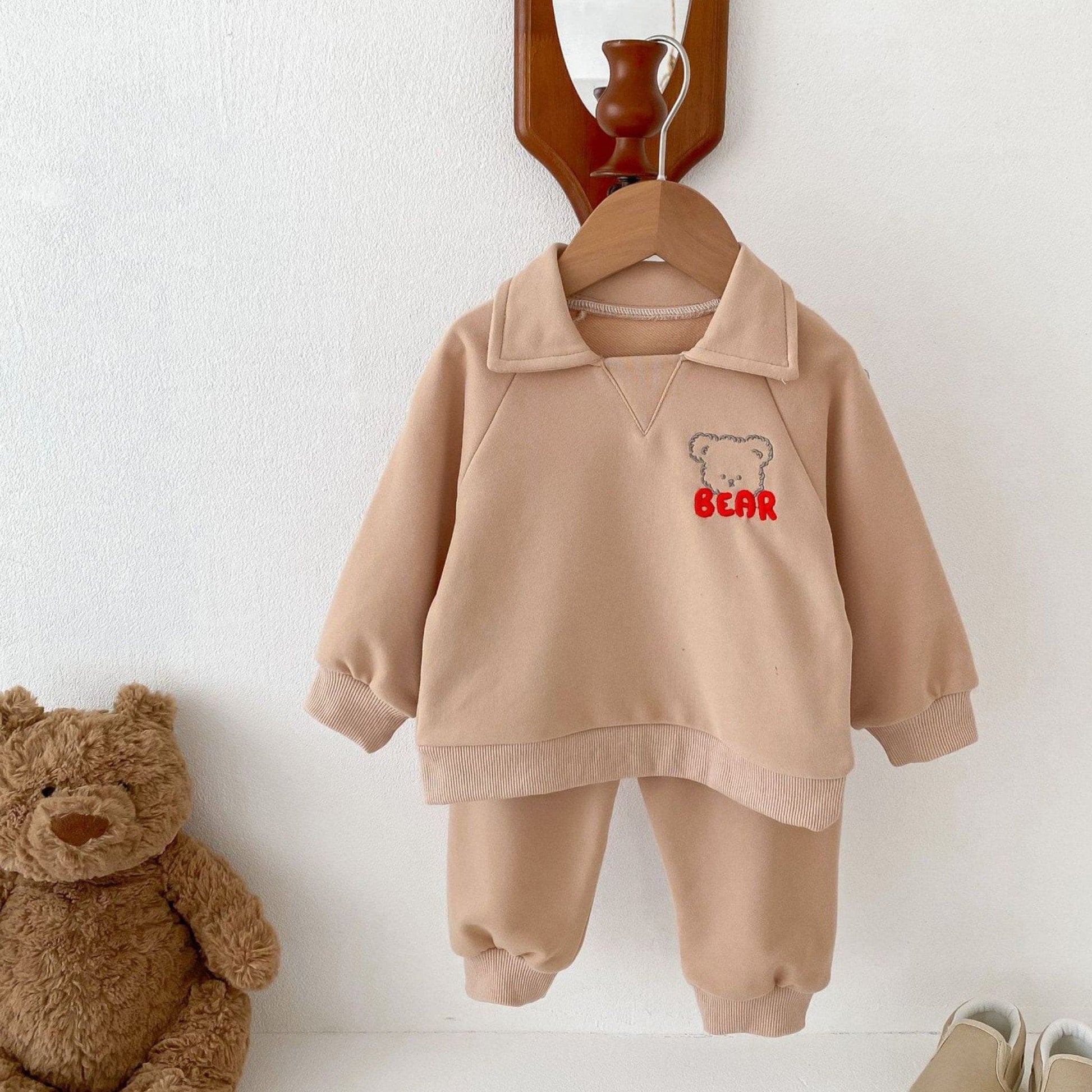 Bear Collar Cotton Lounge Set, Khaki (6m-4yrs)