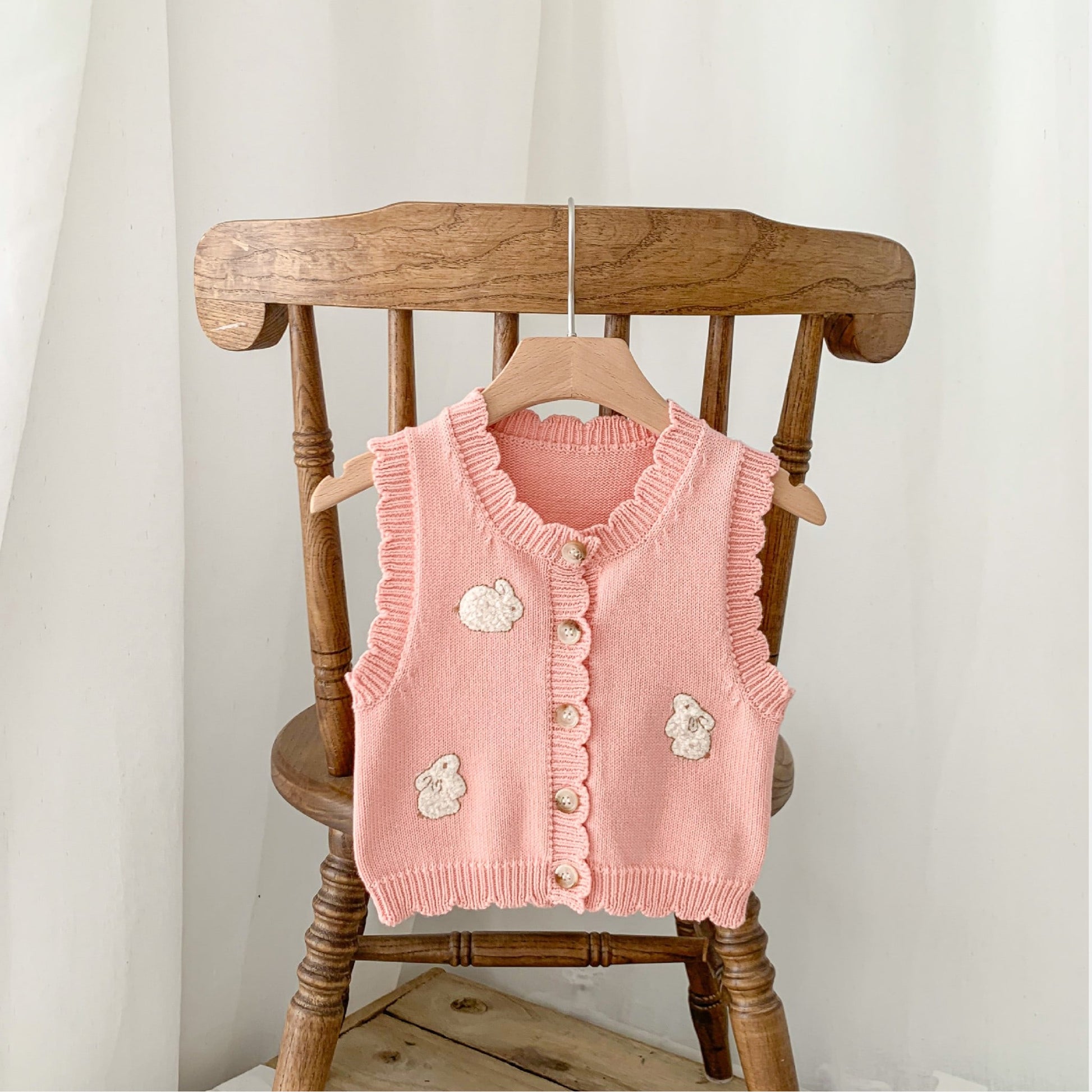 Binky Bunny Cotton Knit Vest, Pink (3m-3yrs)