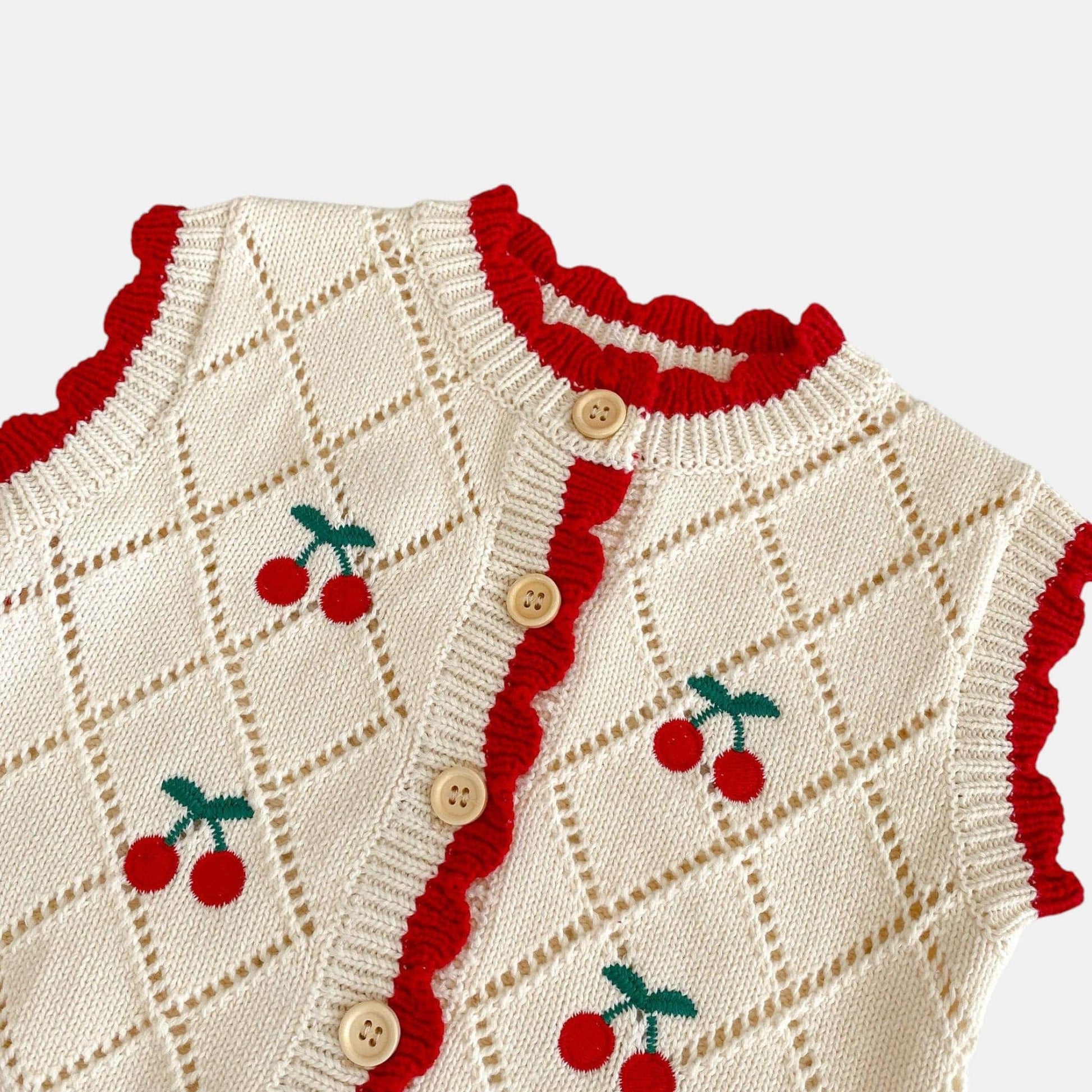 Cherry Charm Cotton Knit Vest (3m-3yrs)