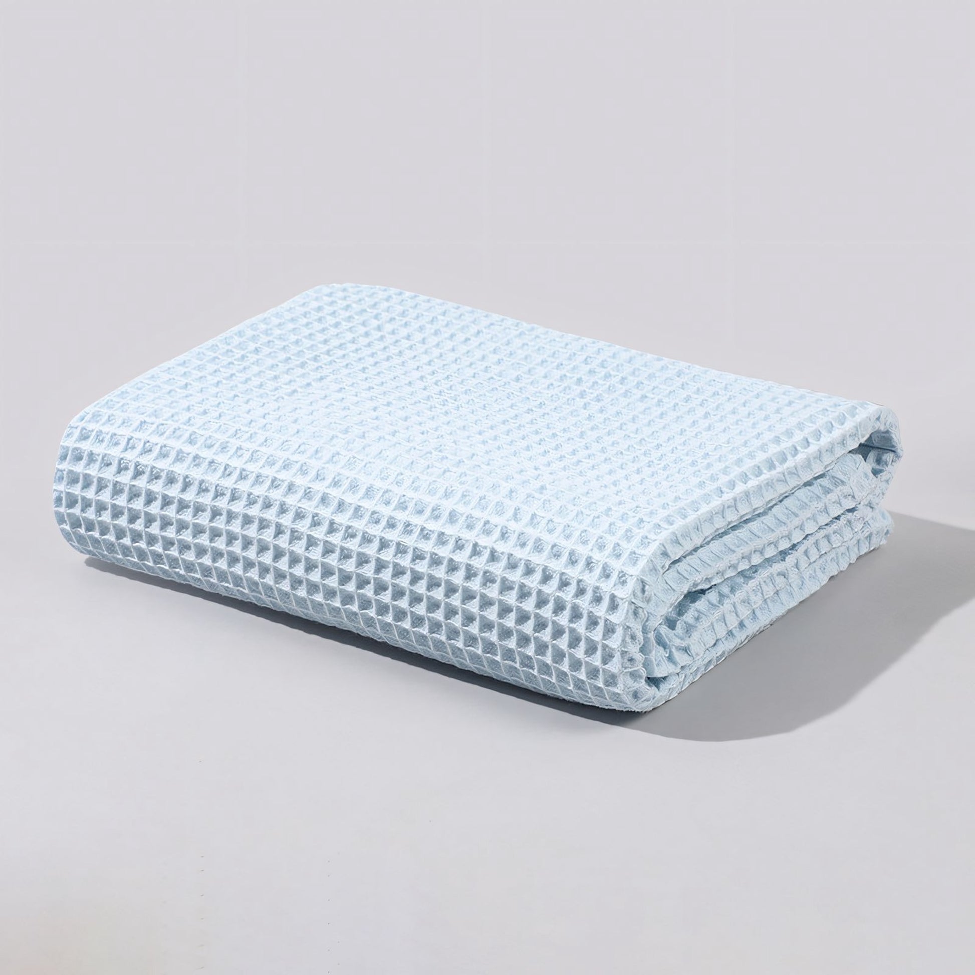 Let your child drift off to peaceful dreams with this calming light blue cotton waffle blanket. The sky-inspired shade adds a soft touch of colour, while the high-density organic texture offers breathable, cosy comfort. Hypoallergenic and durable, it's perfect for naps, playtime, or stroller adventures.