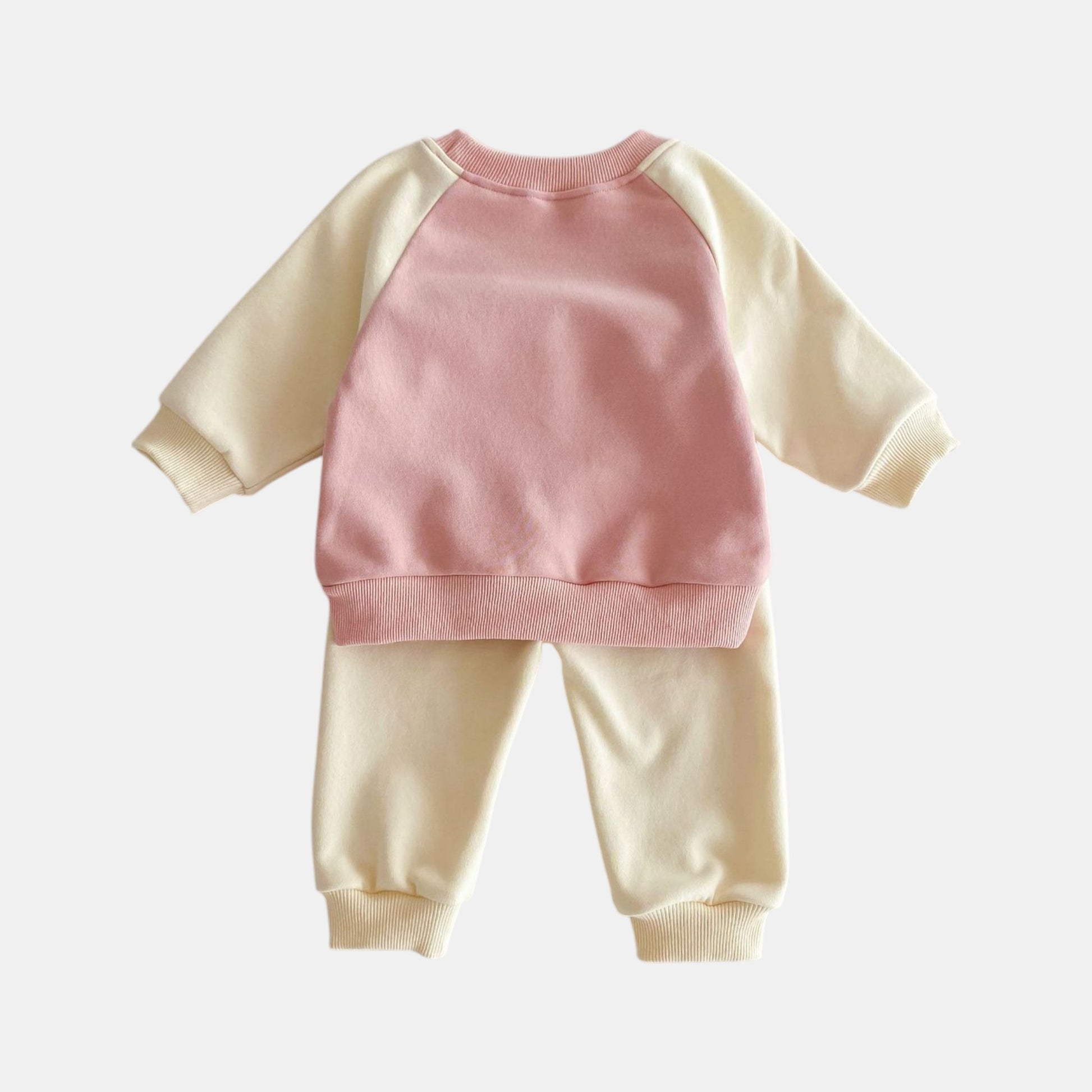 Brighten up the day with this playful lounge set, featuring a delightful pink sweater with cheerful yellow contrast sleeves and joggers. A tiny semi-circle faux pocket on the chest adds a sweet little detail, just for fun. Designed in soft cotton with a pullover style, elasticated waist and cuffs, it’s all about comfort with a colourful twist.