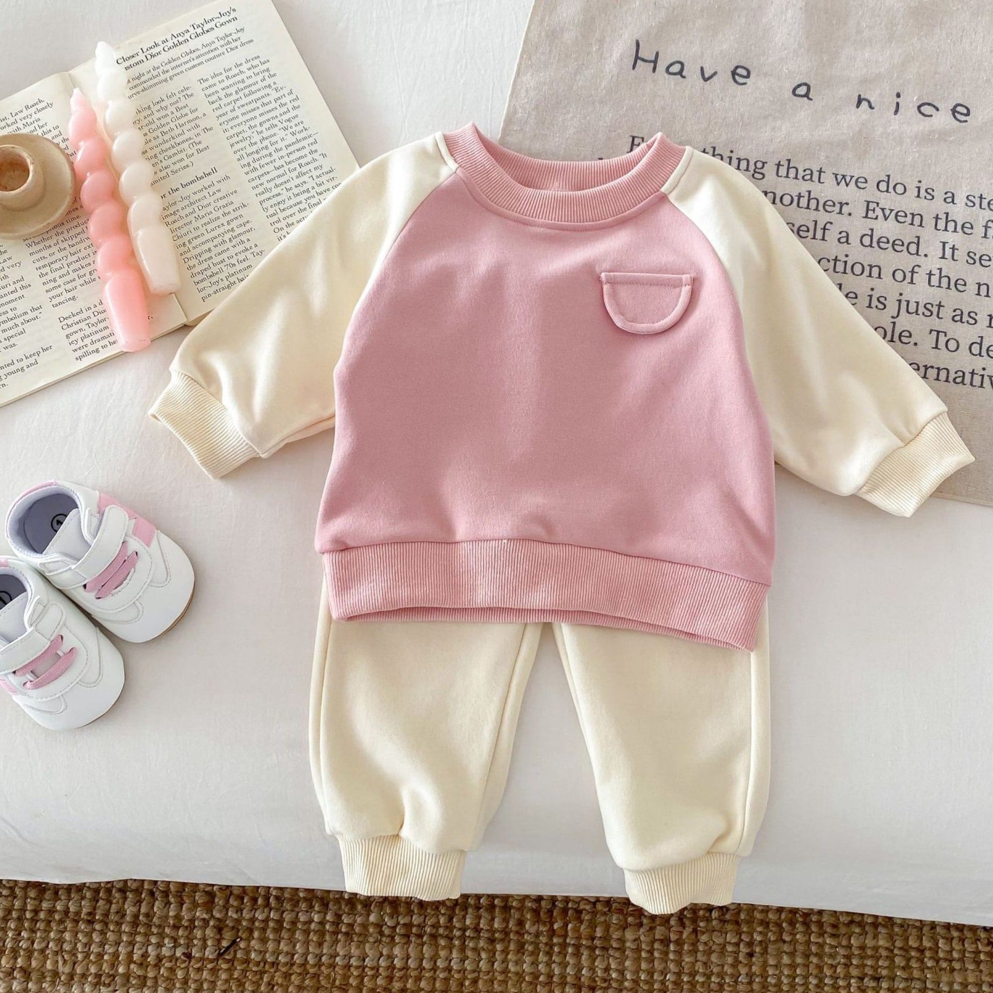 Faux Pocket Cotton Lounge Set, Pink (3m-4yrs)