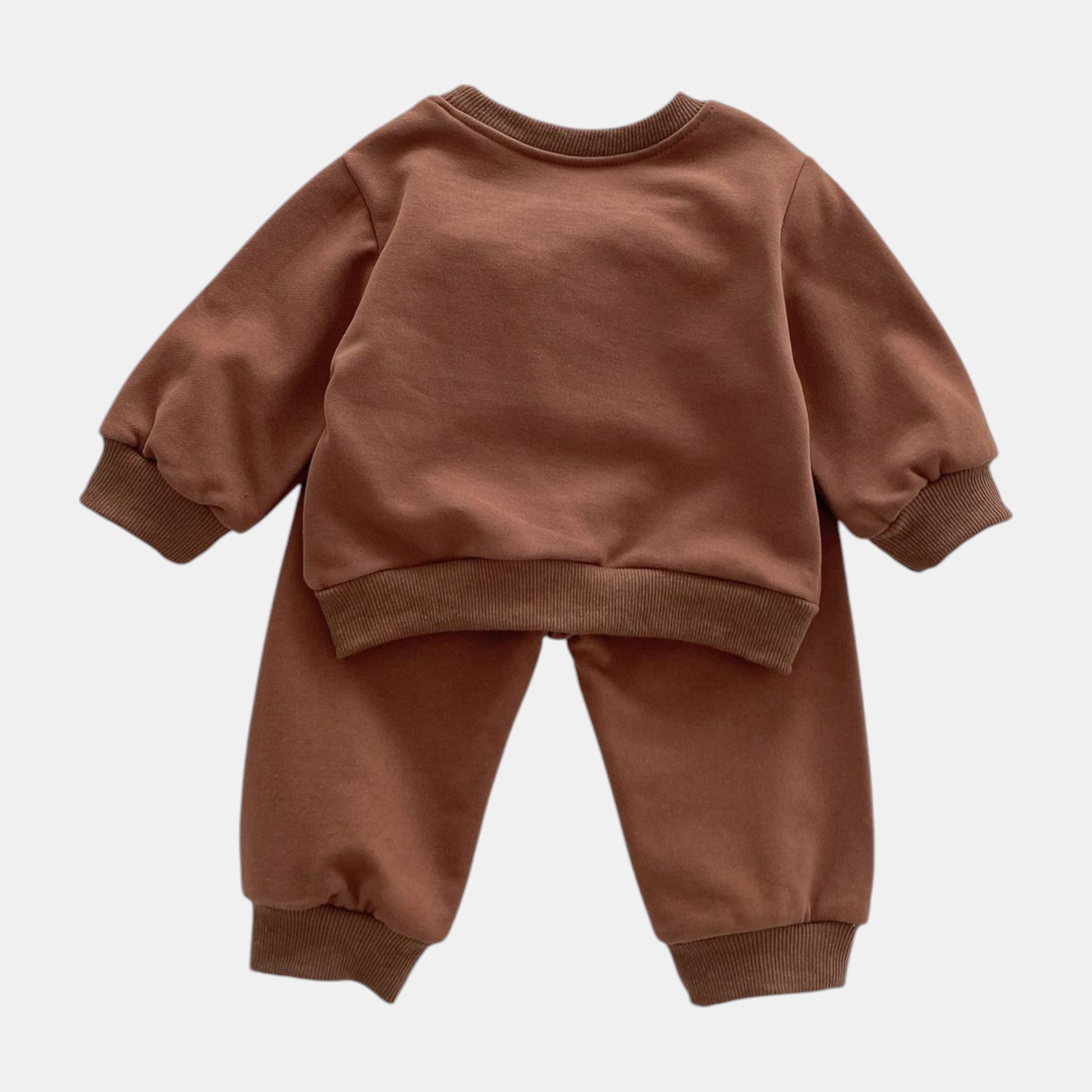 This cosy brown cotton lounge set features an adorable trio of bears, adding a playful charm to everyday wear. The relaxed-fit sweater and elasticated waist joggers ensure all-day comfort, making it perfect for playtime, lounging, or layering on cooler days. A timeless and snug essential for your little bear.