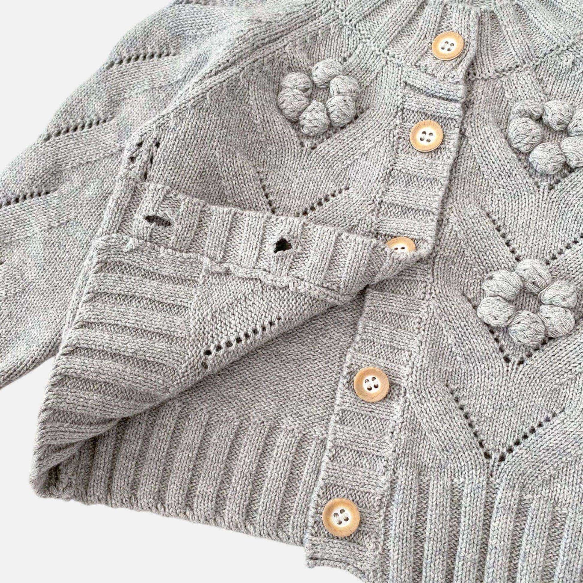 Nora Floral Knit Cardigan - Grey (3m-3yrs)