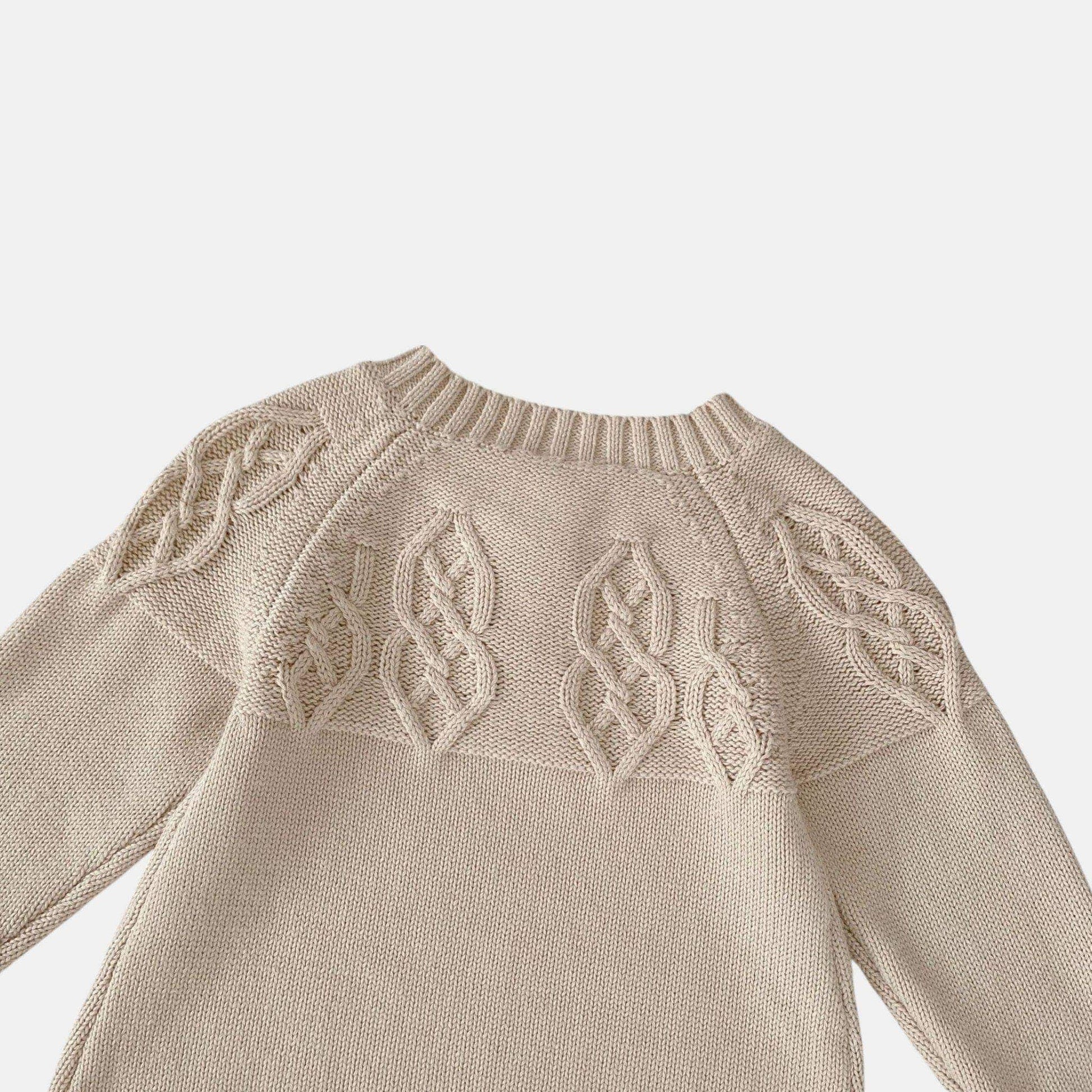 A timeless khaki romper in soft cotton, with a textured jacquard knit that adds quiet sophistication. The shoulder and crotch buttons make nappy changes effortless, while the breathable fabric keeps them comfy whether crawling or cuddling. Designed to mix and match easily – layer with cardigans in winter or wear solo on sunny days. One of those hardworking pieces that stays looking neat through all the little adventures.