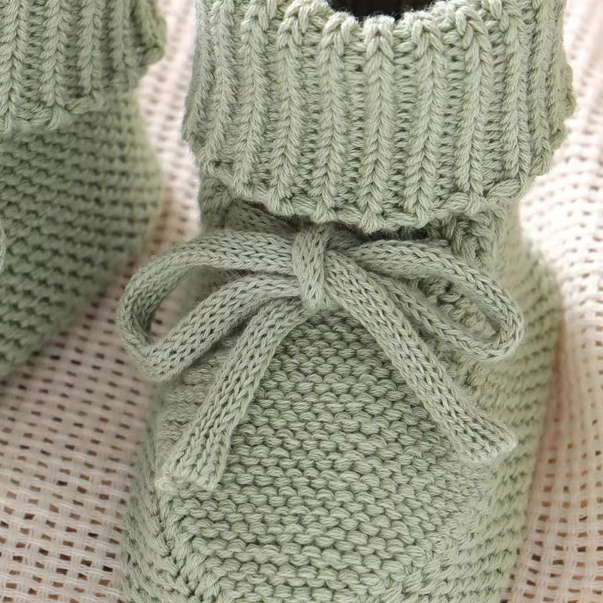 Sage Knit Baby Booties with Bow (9-12cm)