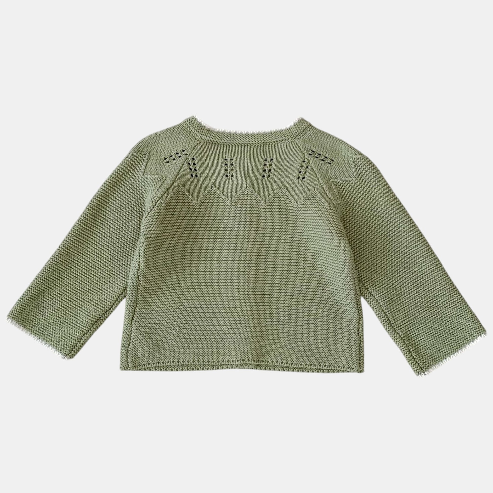 Sage Pointelle Cotton Knit Cardigan (3m-3yrs)
