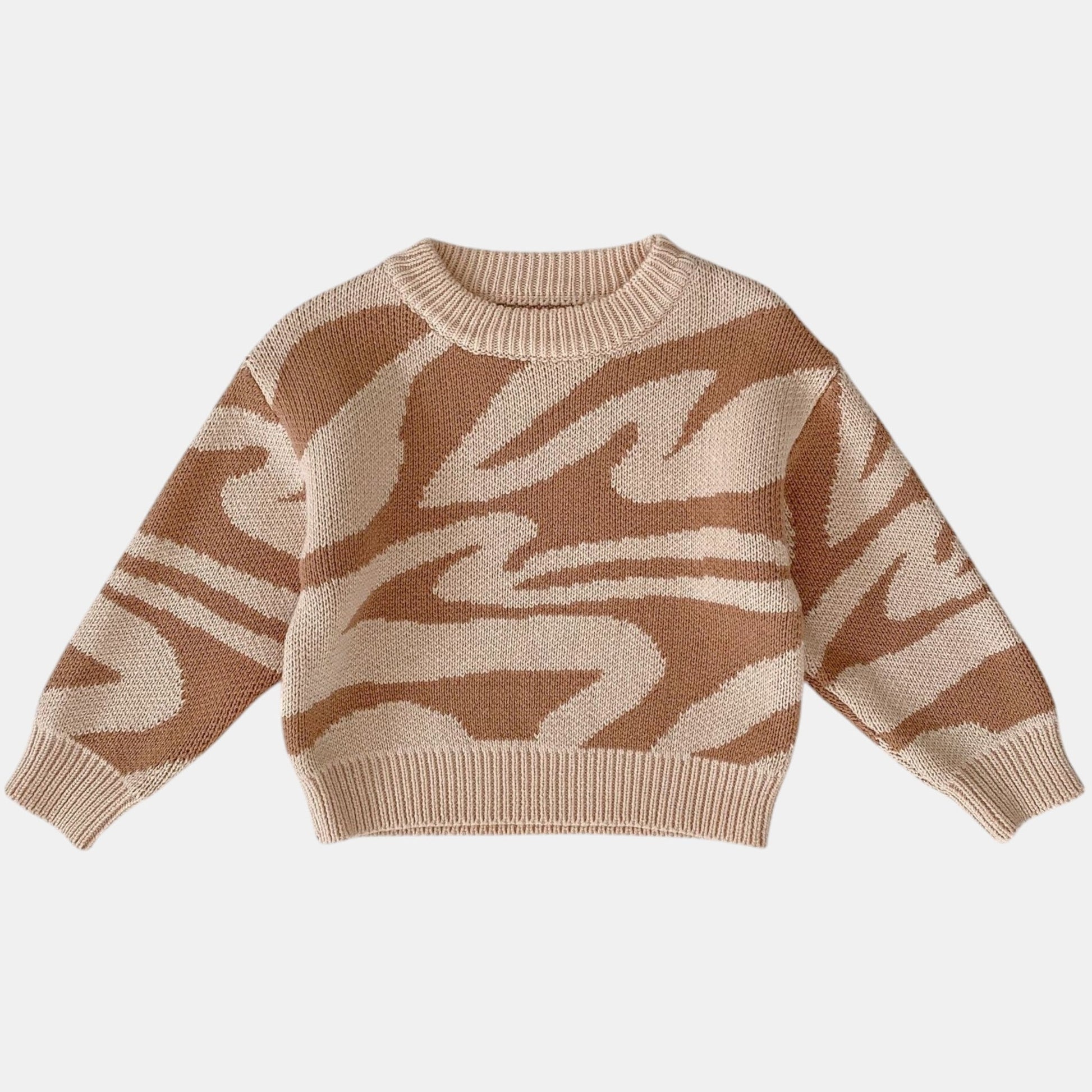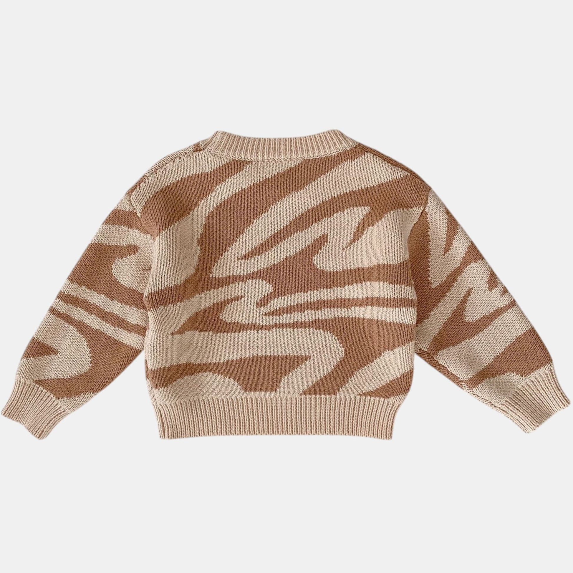 A cosy cotton sweater featuring a playful abstract animal print, perfect for little explorers. The soft knit and round neck make it ideal for layering over tees or wearing solo on milder days. Designed to move with them, whether they're crawling or climbing, while keeping them comfortably warm. A joyful piece that adds character to everyday adventures.