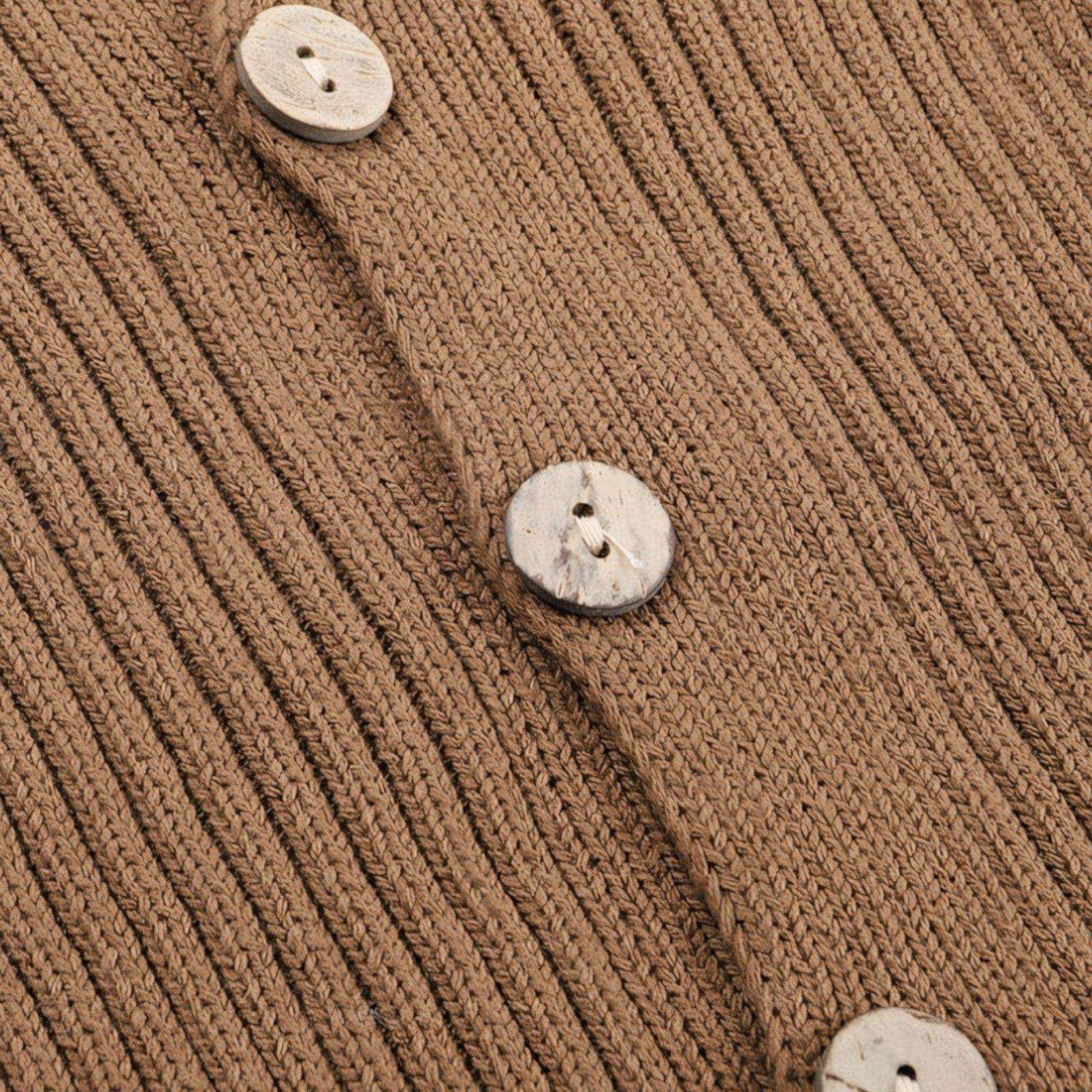 Wrap your little one in the cosy charm of this cocoa-brown cotton knit romper, finished with vintage-style wooden buttons for a timeless touch. The breathable, long-sleeve design features a round neckline and a gentle fit, crafted from 100% cotton to keep delicate skin comfortable all day. With a buttoned crotch for easy changes, it’s a beautifully practical piece for everyday moments with a hint of classic style.