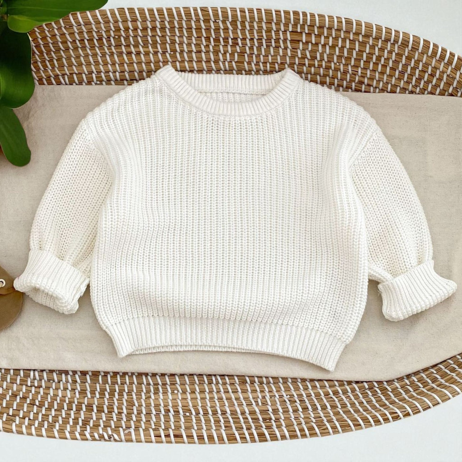 Soft and versatile, this milk white rib knit sweater combines comfort with timeless style. Its long sleeves and classic design make it easy to pair with leggings, bloomers, or rompers for everyday adventures or layering on chilly mornings.