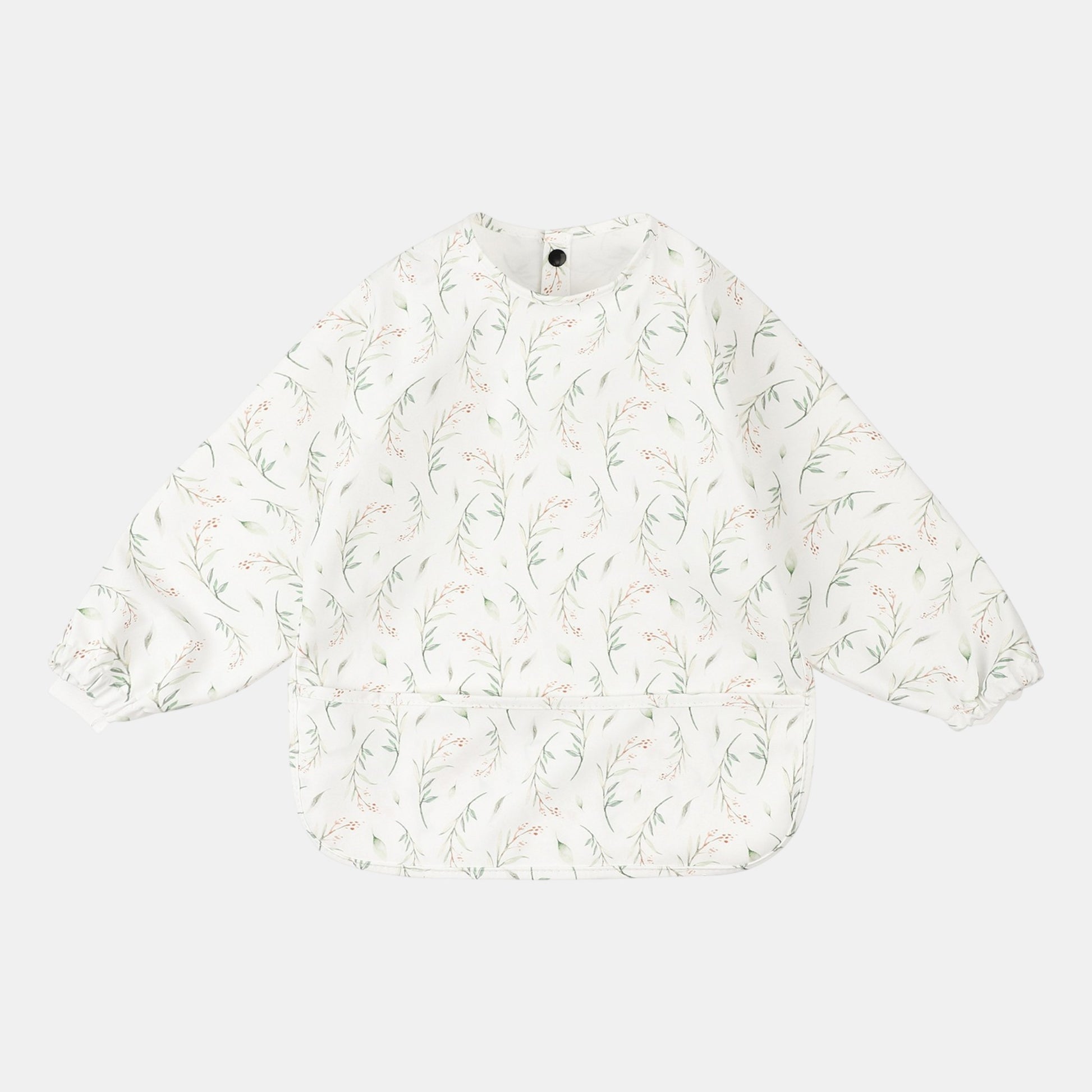A delicate wild meadow print brings gentle charm to mealtimes on this long-sleeve waterproof bib. Designed with a large front pocket to catch spills, elasticated cuffs for neat sleeves, and a snap fastening at the back for a secure fit, it combines practicality with comfort for every meal.