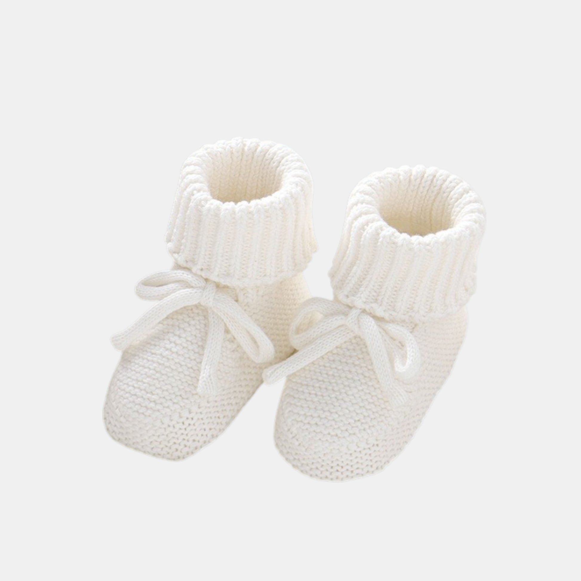 Crisp white cotton booties featuring a delicate bow and a foldable cuff that can be worn short or tall. Team with a favourite romper or skirt for a soft, timeless look. Perfect for little toes curling into cosy mornings or twirling in the sun.